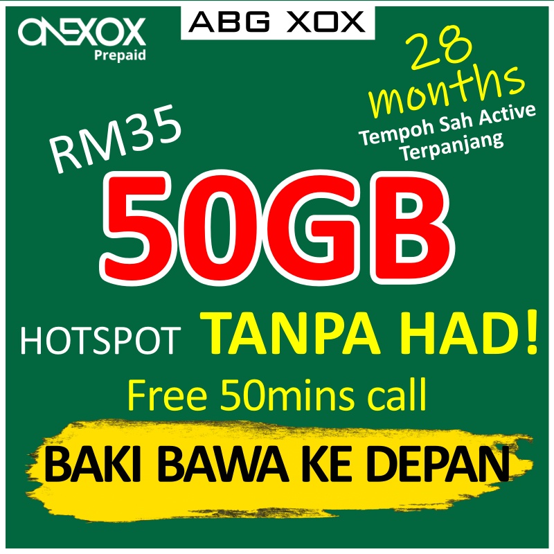 Abg Xox Onexox Ultimate 35 Prepaid Simcard 4g Lte Plan Unlimited Hotspot Onexox Xox Simkad Sim Card No Contract Shopee Malaysia